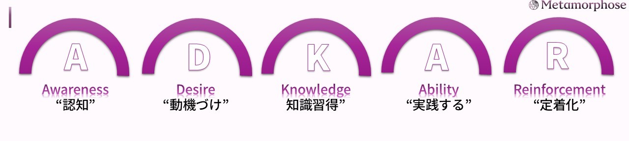 ADKAR(Awareness, Desire, Knowledge, Ability, Reinforcement)をベースに、