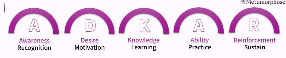 ADKAR (Awareness, Desire, Knowledge, Ability, Reinforcement).